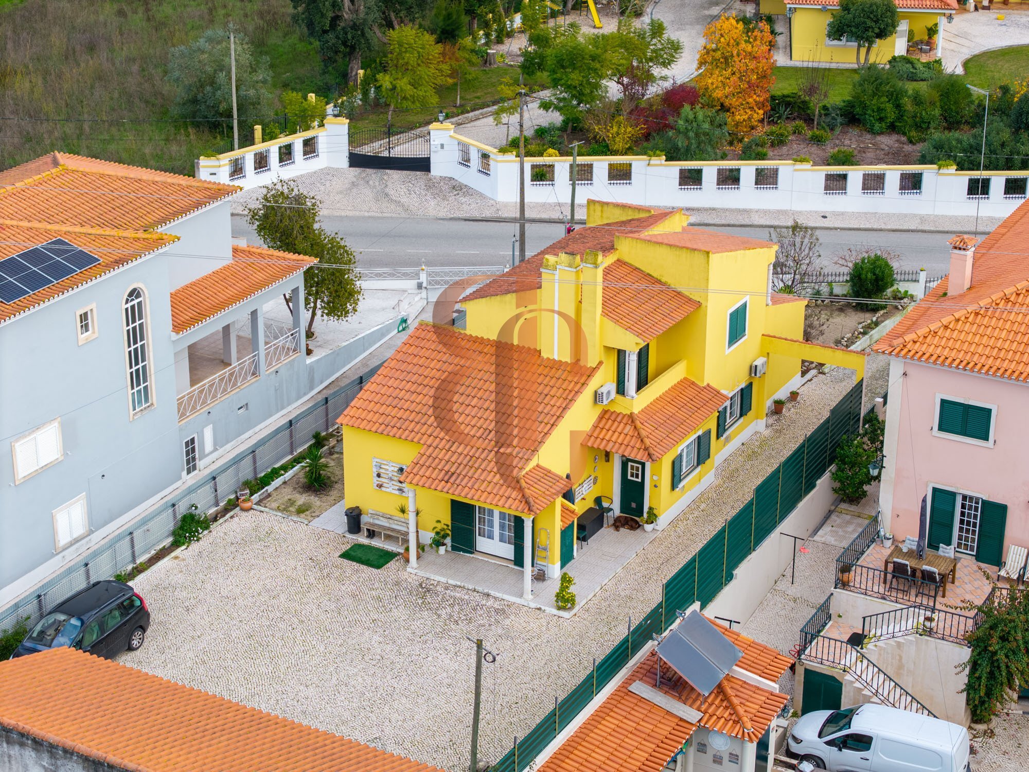 Localizada numa zona residencial calma, rodeada por moradias semelhantes, e acesso a um parque verde com árvores e passadiços, perfeito para caminhadas ao ar livre.