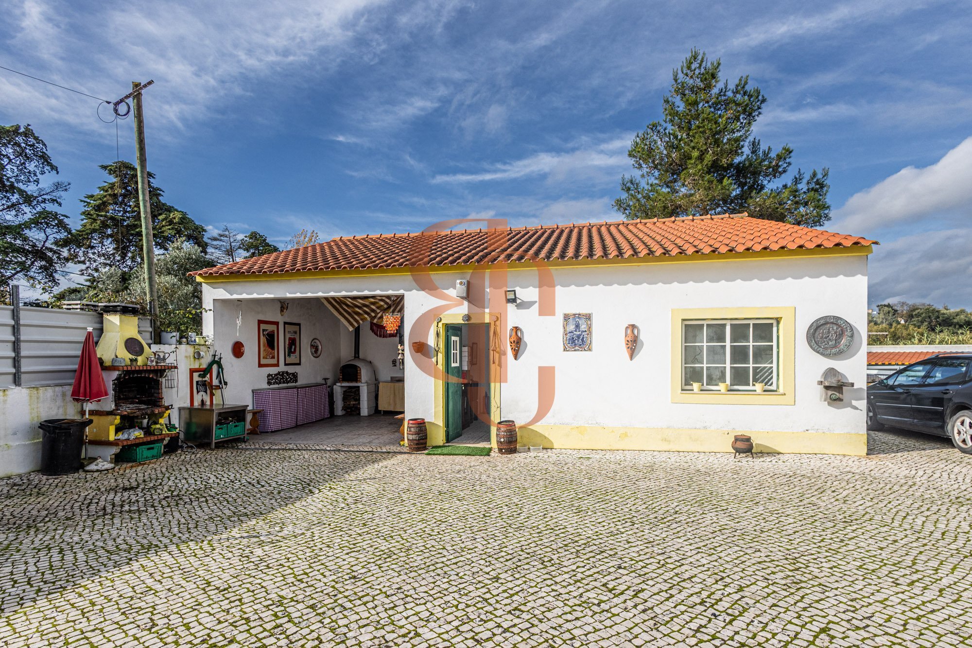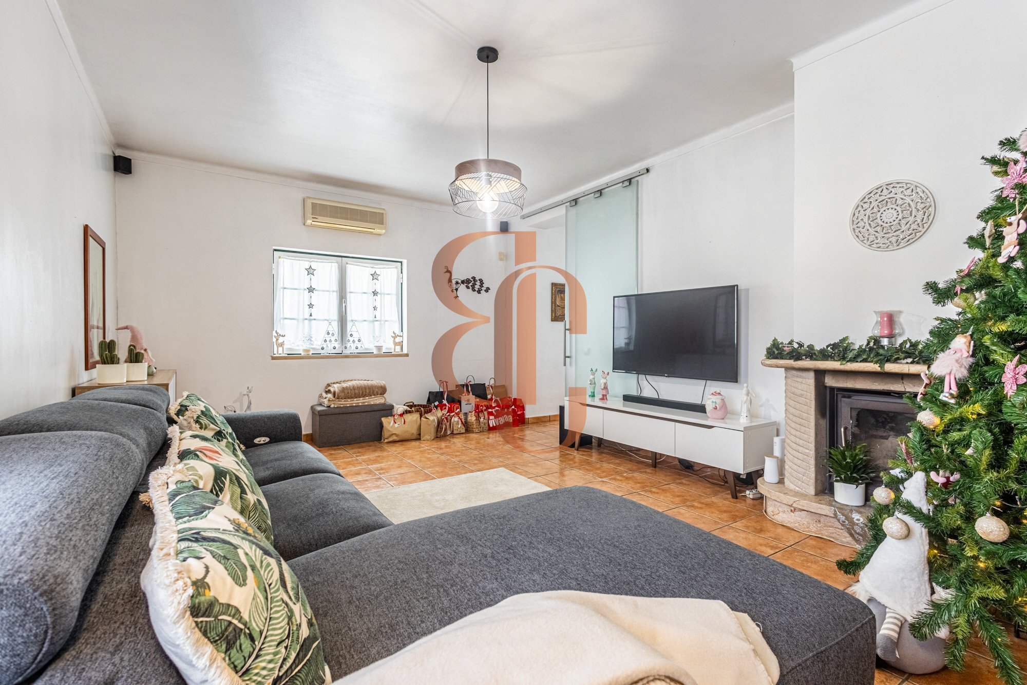 A casa conta com 187 m² de área construída, distribuída de forma funcional e confortável, com sala com lareira, ar condicionado, 3 quartos (um deles suíte) e 2 casas de banho.